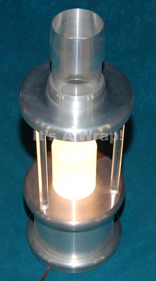 A functional set dressing table lamp appearing in Star Trek VII: Generations on the set of “Data’s” (Brent Spiner) quarters as a specialized device used to contain his uninstalled emotion chip. The item is made from polished metal with acrylic shades. The shade surrounding the light source is opaque, a … |