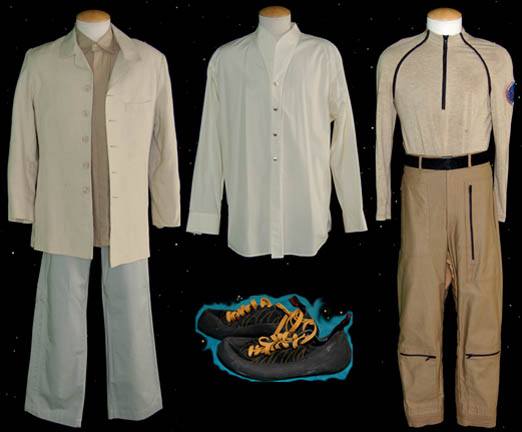 A lot of costumes featured in various episodes of Star Trek: Enterprise. The first is a stunt arid climate costume appearing in the episode “The Breach” for wear by Shawn Crowder’. The costume is tan colored uniform trousers with multiple zippered pockets and a black belt, a tan uniform shirt … |