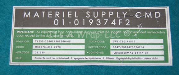A screen used graphical application appearing variously in episodes of Star Trek: Enterprise. The item was carefully removed from a set element prior to strike. It depicts itself as ‘Materiel Supply CMD’ and lists inventory information as well as various numeric values. The item is green and black graphics on … |