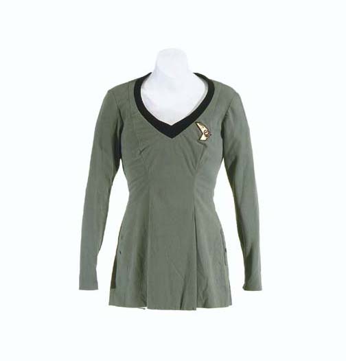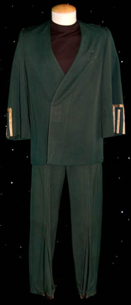 A green three piece costume featured in Star Trek IV: The Voyage Home for wear by a worker at the Federation Security Council. The costume is green trousers and a matching Class-C jacket wrap style top like those featured in Star Trek I: The Motion Picture, but altered to include … |