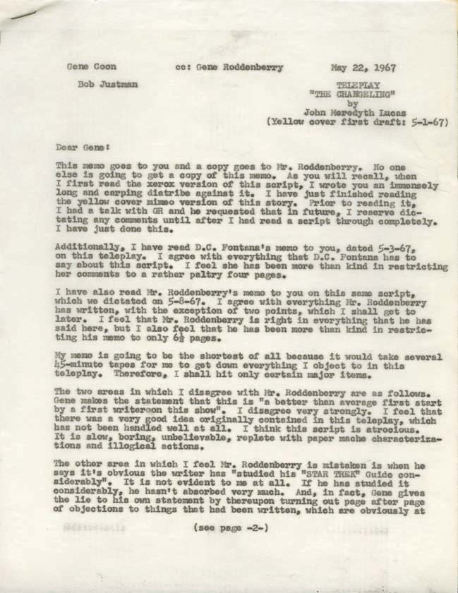 (NBC-TV, 1966-69) A remarkable collection of 17 original carbon-copy memos from associate producer, Bob Justman, to executive producer, Gene Roddenberry, and writer, Gene Coon. 42 pages total, varying from 1 to 6 pages in length. The memos span November 1, 1966 through September 5, 1967 and include the episodes: “Space … |