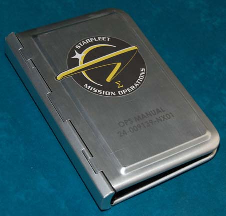 A metal covered mission operations manual believed to have been featured in the Star Trek: Enterprise episode “First Flight”. The item is a medium sized six ring binder date/address/bank info book. Externally, the cover of the item features a graphical application depicting a logo labeled ‘Starfleet Mission Operations’ with a … |