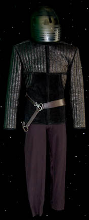 A costume featured in the Star Trek: Voyager episode “Resistance”; wherein “Captain Janeway” (Kate Mulgrew) is forced to rely on an unstable resistance fighter to rescue some imprisoned crew members. This costume consists of a sleeveless, full-length, black jumpsuit made mostly of a stretchy, spandex-like fabric with stirrups for the … |