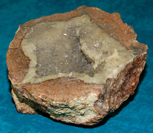 A piece of set dressing similar to those featured throughout Star Trek episodic television. This item is a geode rock used as set dressing in subterranean scenes; this geode is brown on the outside and houses a dirty-white and blue-ish, roughly star-shaped, intricate, textured crystal formation inside. The item measures … |