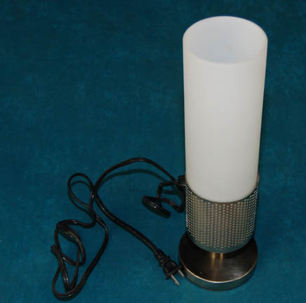A practical set dressing table lamp believed to have appeared on sets build for episodes of Star Trek: Enterprise. The item is a machined metal lamp base with a frosted white glass shade that fits neatly into a perforated holder. The item is untested due to absence of bulb but … |
