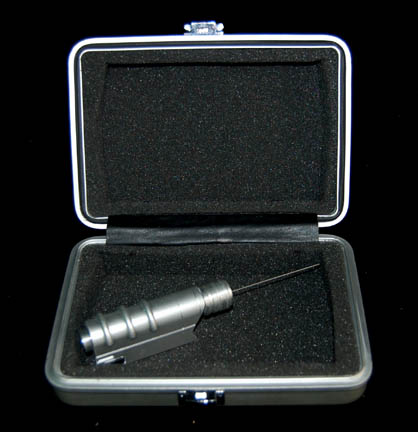 This great faux Thoracic Hypospray kit is from Dr. Phlox's (John Billingsley) sickbay onboard the NX-01 Enterprise used during the Star Trek: Enterprise series. The case is metal with a snap clasp and a Starfleet medical label on the front. The hypospray is silver painted resin with metal components and … |