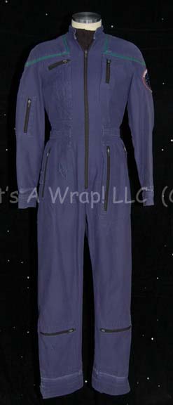 A distressed Starfleet uniform jumpsuit with sciences blue division stripes around the shoulders featured in multiple episodes of Star Trek: Enterprise. The costume was originally intended for wear by Kellie Waymire in her portrayal of “Crewman Cutler” in episodes like “Strange New World”, “Dear Doctor”, and “Two Days and Two … |