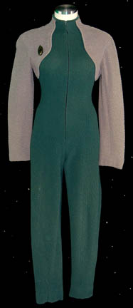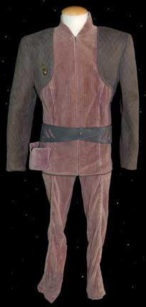 A costume featured in various episodes of Star Trek: Deep Space Nine for use by members of the Bajoran Engineering Corps. This costume is a long-sleeved, light mauve-colored jacket featuring a dark-gray, diamond-shaped pattern a;ong the shoulders, and textured, vertical stripes along the rest. A Velcro patch for a commbadge … |