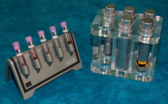 A lot of two prop items featured in Star Trek: Deep Space Nine and Enterprise respectively. The first item is a tray of “blood samples” and the prop test tubes that they come in from the Deep Space Nine episode “The Quickening”, where “Dr. Bashir” (Alexander Siddig) and “Jadzia Dax” … |