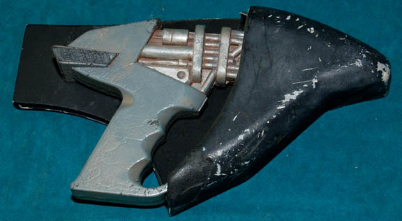 A prop item similar to those featured in various episodes of Star Trek: Deep Space Nine like “Jem’Hadar”. This item is a gray, rubber-cast pistol featuring a molded hand grip, a black, raised accent on the end, silver-colored accents in the middle that emulate the circuitry of the device; an … |