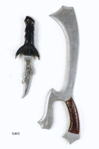A collection of twelve prop weapons and tools, most made from hard rubber painted as metal, three with sheaths -- made for <I>Star Trek: The Next Generation</I>, <I>Star Trek: Deep Space Nine</I>, <I>Star Trek: Voyager</I> and <I>Star Trek: Enterprise</I> (12) |