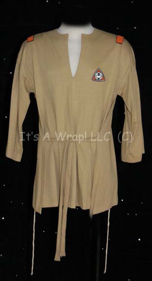 A Starfleet casual uniform top featured in Star Trek I: The Motion Picture. The costume is an “Epsilon IX” duty uniform top composed of a khaki cropped sleeved shirt with crimped trim around the collar and sleeve cuffs, and a waist tie, a sciences orange “Epsilon IX” assignment patch on … |