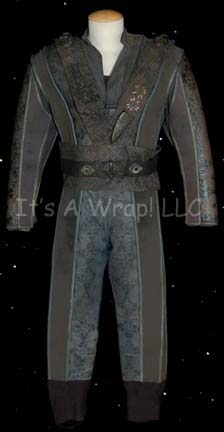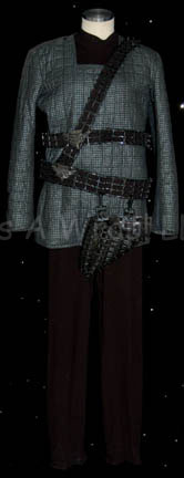 A costume featured in various episodes of Star Trek: Deep Space Nine for wear by the Romulan intelligence agency the “Tal Shiar”. This costume consists of a long-sleeved, full-length, textured black jumpsuit, a long-sleeved, black tunic arranged into quilted squares with still more reflective, metal-colored squares making up each of … |
