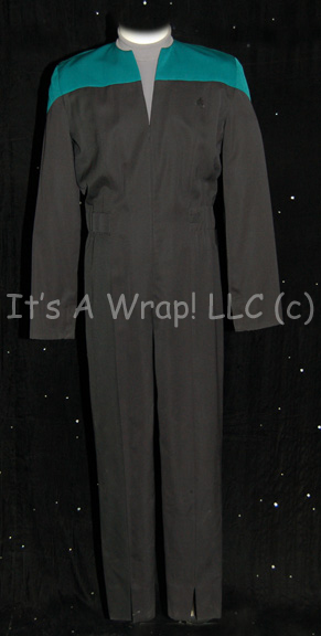A costume featured in various season four episodes of Star Trek: Deep Space Nine. This costume consists of a long-sleeved, full-length, black Starfleet uniform jumpsuit featuring Sciences Blue division colors around the shoulders, hoops at the waist for ‘away team gear’, a Velcro patch for a combadge (not included), a … |