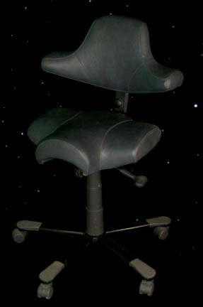 A desk chair the style of which appeared in Star Trek: First Contact in “Engineering”. The chair has a gas lift pedestal, a five arm rolling base, a rotating seat with multiple adjustments and a separated back. The seat and back are gray colored vinyl. The item measures approx. 37 … |