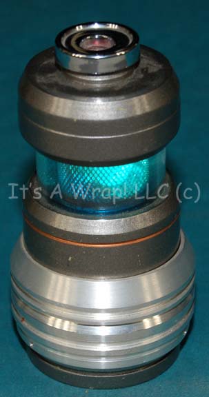 A prop featured in the Star Trek: Voyager episode “Random Thoughts” as a trading compoennet. The item appeared in the hands of “Neelix” (Ethan Phillips) and “Seven of Nine” (Jeri Ryan). Made from an acrylic shell, the item is painted metallic pewter with a chrome button switch on the top … |