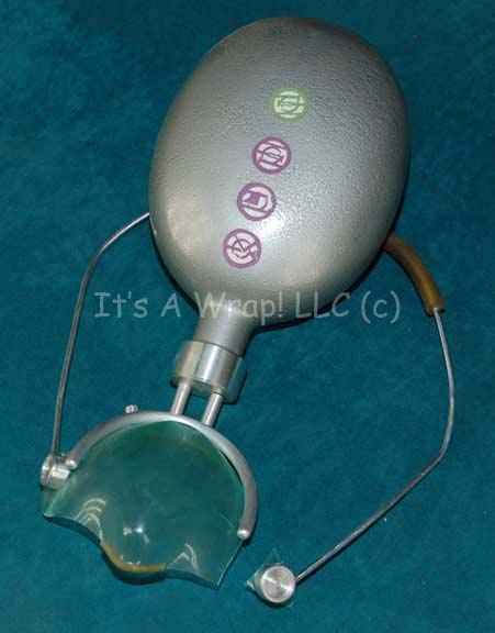 A prop breath mask used by “Captain Archer” (Scott Bakula) and “Degra” (Randy Oglesby) in the Star Trek: Enterprise episode “Stratagem”. The item is a metal canteen with affixed polished metal accents to create a frame that covers the mouth and nose of the user. The item has suffered some … |