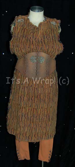 A costume featured in the Star Trek: Voyager episode “Muse”; wherein “B'Elanna Torres” (Roxann Dawson) is trapped on a primitive planet and finds that a local man is writing plays about the logs of hers he had been able to hear. This costume consists of it consists of a long, … |