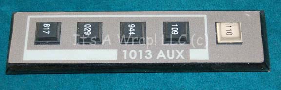 A piece of smoked acrylic with a graphical application affixed to the front, with beveled sides, a label reading ‘1013 AUX’, a series of black, white, and grey faux rubber buttons appearing as set dressing on various episodes of Star Trek: Enterprise. Items like these appeared typically next to doors … |