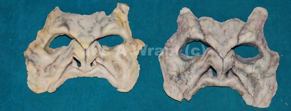 A lot of two special effects make-up pieces composing Reman faces like those appearing in Star Trek X: Nemesis. The items are molded foam rubber painted in lifelike skin tones specific to the Remans to cover the cheekbones, brown, nose and around the eyes. The items are in excellent used … |