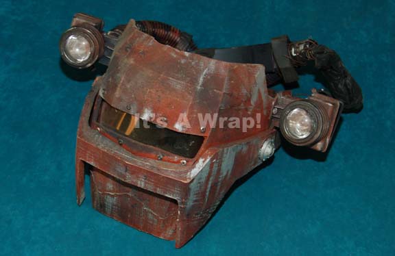 A prop mining mask featured in Star Trek VI: The Undiscovered Country for use by alien prisoners in the dilithium mines of Rura Penthe. The item is sturdy molded plastic painted rust red with multiple points of distress to appear ‘abused’, some spotting of metallic silver paint to appear metal. … |