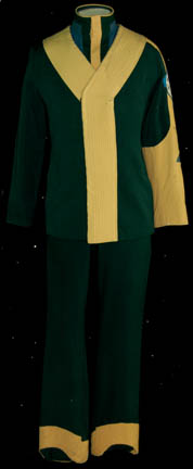 A costume featured in Star Trek IV: The Voyage Home for wear by ushers in the Federation Security Council. The costume is green colored trousers with yellow accents at the bottom of the legs, a green long sleeved to with a yellow left sleeve and a band running around the … |