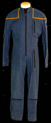A costume believed to have been featured in the scene from Star Trek III: The Search for Spock where the “Enterprise” is returning to space dock after its fight with “Kahn” (Ricardo Montalban). This costume consists of a long-sleeved, burnt-orange colored top featuring raised piping around the shoulders, a white … |