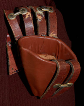 This great ice-hockey costume was worn by “Tom Paris” (Robert Duncan McNeill) in the Star Trek: Voyager episode “Critical Care” in which he played a game of holodeck ice-hockey with “Harry Kim” (Garrett Wang). The costume includes a gold vinyl jersey with red quilted vinyl band around the waist and … |
