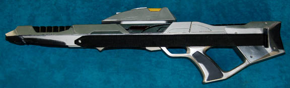 An excellent prop weapon first appearing in Star Trek VIII: First Contact. A Starfleet Type III, Mark II Phaser Rifle, the item is constructed of solid resin with metallic silver, black, and gunmetal colored paint, . The ‘scope' features an opaque acrylic sight with red crosshairs, and a yellow accent … |
