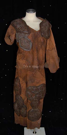 A costume featured in the Star Trek: Enterprise episode “Terra Nova”; wherein the “Enterprise NX-01” discovers the fate of the lost first Earth colony. This costume consists of trousers and a top made of brown roughly cut leather pieces that have been hand stitched together. Attached to the legs, arms … |