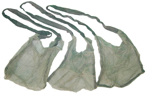 These three non-descript mesh bags were used during various episodic Star Trek television and / or feature films. Each bag is made of gray mesh with attached gray fabric handles. Each measures approx. 14 x 13 inches (not including straps) |