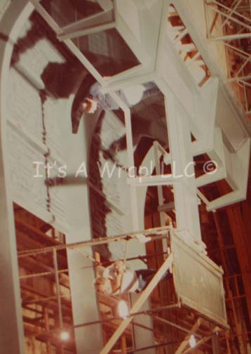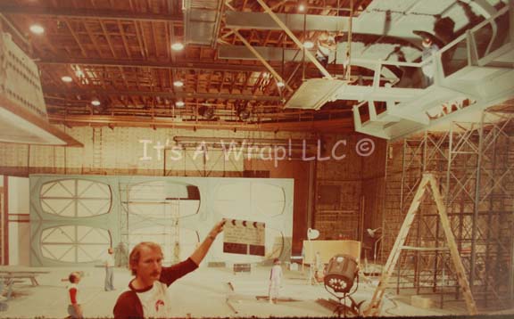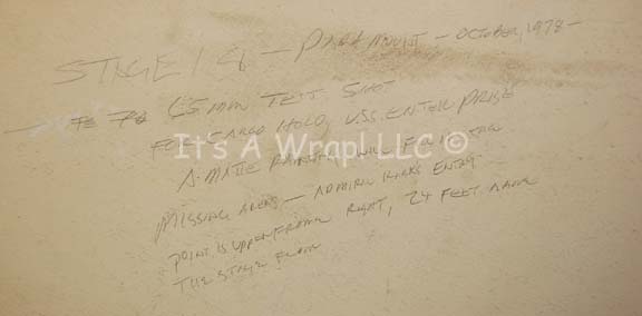 Description: A camera test shot printed on poster board depicting the scene on Stage 18 at the Paramount lot in preparation for filming of Star Trek I: The Motion Picture. The face of the item reveals the padded walls, flooring, and rafters of the sound stage as well as some of the sets built for the feature. The back wall of the refit “Starship Enterprise” cargo bay is clearly evident showing the cargo pod cavities, and a gangway in the upper right through which William Shatner would soon portray “Admiral Kirk” on his first foray into the newly designed ship. In the foreground a gentleman wearing a Paramount Pictures tee-shirt who is very likely to be the ‘clapper-loader’ holds a slate marking the shot. The reverse of the item features a handwritten description of the picture on the opposite stating: ‘Stage 18 – Paramount – October, 1978, 65mm test shot for cargo hold, U.S.S. Enterprise. A matte painting will fill in the missing areas – Admiral Kirk’s entry point is upper front right, 24 feet above the stage floor’. The item measures approx. 31 X 19.75 inches with the picture measuring 30.25 X 14.25 inches. A slight degree of discoloration is to be expected due to time and storage conditions, several dings in the corners are present, but the item is a fascinating look into the work that went into scope of creating the realism of Star Trek: The Motion Picture.