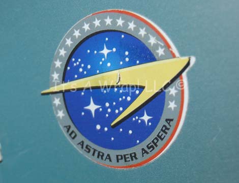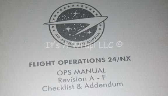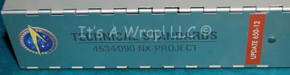 Description: A large metal binder featured in the Star Trek: Enterprise episode “First Flight”. The item is filled with high quality white paper, three hole punched and separated by dividers to appear filled. The exterior of the item features adhered graphical applications of the Starfleet Command emblem in grayscale and one smaller version on the binding in color. The binding features adhered letting spelling out ‘Technical Standards’ and ‘NX Project’, and the front cover reads ‘Flight Operations 24/NX’ and ‘OPS Manual, Revision A-F, Checklist & Addendum’. The item measures approx. 11.75 X 12.25 with a 3.75 inch spine.