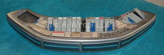 Description: A prop musical instrument keyboard featured in the opening of the Star Trek: Deep Space Nine episode “Equilibrium”. The item was said to be “Jake Sisko’s” (Cirroc Lofton) but was played by “Jadzia Dax” (Terry Farrell) as memories of a long forgotten personality resurfaced within her. The item is an injection molded crescent moon shaped affair with cut away where foam padding has been inserted to allow for plastic ‘keys’ to be positioned. A grouping of buttons rest across the top. The item is elaborate but has seen better days, it is missing several keys. The item measures approx. 23.5 X 9.5 X 2.25 inches.