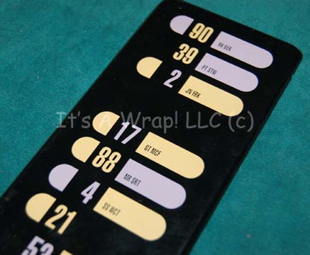 Description: A prop button panel like those appearing variously in episodes of Star Trek: Deep Space Nine. The item is a black acrylic plate with beveled edges and multi-colored silk screened faux buttons and numeric values. The color scheme differentiates it from have appeared in Star Trek: The Next Generation or Voyager and the item measures approx. 7.5 X 3 inches.