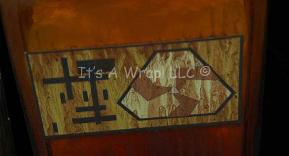 Description: A lot of glass jars similar to those featured in episodes of Star Trek: Enterprise like “Civilization” and “Rajiin”. This lot consists of four jars in varying sizes and shapes; two circular jars featuring multiple labels with alien iconographic symbols, glass stoppers, and a white powder inside. A small jar itself with different iconography on the label, a rubber stopper, and filled with red fluid. The largest jar is more squarish in shape, has a label with Triskelion iconography, a cork and similar white powder. All bottles are intentionally distressed to look ‘dirty’ or ‘aged’ and all bottles except the small one with the red fluid, which is clear glass, are a dark orange glass. The Triskelion species was featured in the Original Series episode “The Gamesters of Triskelion”. The two identical jars have a height of approx. 8 inches, and a diameter of approx. four inches, the smaller bottle approx. 5 X 2, and the largest approx. 5 X 4 X 11 inches.