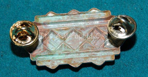 Description: A molded metal badge appearing on the uniforms of officers serving in the Terran Empire version of Starfleet in the Star Trek: Enterprise episodes “In a Mirror, Darkly: Parts I and II”. The item is pin backed for uniform placement and appeared almost exclusively on the costumes of flag ranked officers (admirals) and captains. Measures approx. 2 X 0.75 inches.
