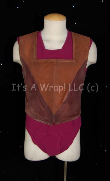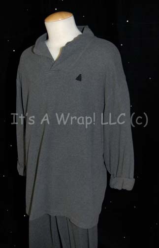 Description: A lot of costume elements featured in episodes of Star Trek: Deep Space Nine like “Second Skin” and “Equilibrium”. This lot consists of sleeveless, rust-colored, suede vest, a sleeveless tunic in the same red used in the Starfleet uniforms, a dark gray, pullover sweatshirt with a Velcro placement for a commbadge (not included), matching trousers, and a light-green, waist apron from the scene in “Equilibrium” where “Commander Sisko” is cooking. A sewn in Deep Space Nine tag in all items except the vest read ‘Avery Brooks’ and attached costumer’s tags read the same and denote use in the aforementioned episodes.