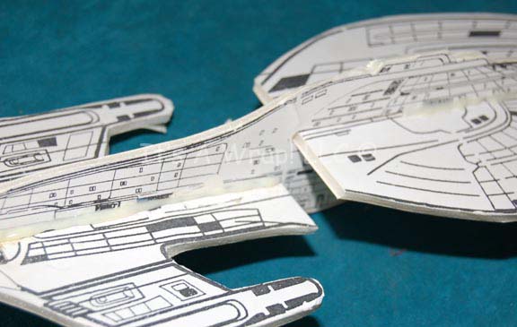 Description: A white foam core fashioned camera test model miniature of an Intrepid-Class ship like “USS Voyager” like those appearing in various episodes of Star Trek: Voyager. The item is composed of glued together sections of fashioned white foam core with graphical details adhered on the dorsal side for detail. The item measures approx. 14 X 5.75 X 3 inches.