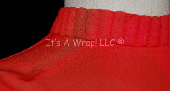Description: A costume element similar to those featured in various Star Trek feature films beginning with “The Wrath of Kahn”. This item is a sleeveless Starfleet uniform undershirt with a ribbed collar, clasps at the neck, and a zip down the back. The shirt is red to denote the wearer as a trainee and has minor staining around the collar and in a spot on the front due to time and storage. A sewn in Paramount tag reads ’40 #4’.
