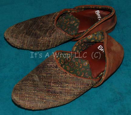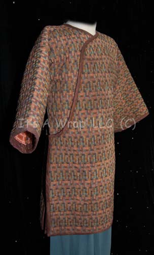 Description: A costume featured in the Star Trek: The Next Generation episode “Inheritance” for wear by Ken Ebling and/or Brent Spiner in their portrayal of “Dr. Soong”. The costume is a multi-colored checkered quilted coat with an asymmetrical front seal and a set of trousers colored blue with distressed hems at the ankles made to appear faded (verified by continuity photos). The costume also features a pair of textured silk and leather sandals inscribed ‘Brent’. The trousers and the coat feature sewn in labels reading ‘Dr. Soong’. A costumer’s tag reads ‘#262 TNG “Inheritance”, Data as ‘Dr. Soong’, Brent Spiner, photo double’ and indicates the components.