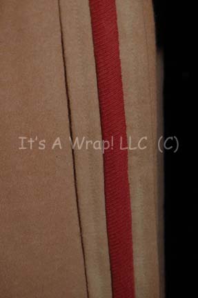 Description: A stunt “Spock” costume featured in Star Trek V: The Final Frontier. The costume is a set of caramel colored wool trousers with a red division stripe down the outside seams of the legs and black belt loops at the waist, a matching sweater with a zip up the back and corresponding snaps and clasps and brown shoulder accents, and a command white sleeveless undershirt with a ribbed collar and a zip up the back. The costume also comes with an unattached command white division strip for the left forearm sleeve separated from its caramel colored trim backing (not pictured). The sweater features a sewn in Paramount tag reading ‘Barnett’ and the trousers feature a sewn in Paramount tag reading ‘Greg Barnett, Stunt Double’. A costumer’s tag reads ‘Greg Barnett, Stund DBL Spock, Nylon’.