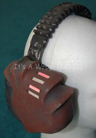 Description: A lot of items featured in the sixth Star Trek feature film “The Undiscovered Country”. This lot consists of a distressed, rust-colored metal canteen featuring Klingon iconographic symbols, a nylon strap with a metal buckle closure, a fabric arm-strap, and a black tube coming out of the canteen. A pair of rust-brown, sturdy plastic manacles that feature metal chain and hinges made for huge arms, and a pair of matching, distressed, headphones with blinking red lights activated by a switch on the inside of the left ear that is powered by a 9-volt battery. The canteen measures approx. 8 X 4.5 X 3.5 inches, the headphones are 7.5 X 7 X 5 inches and the manacles themselves have a diameter of approx. 6.5 inches and the chain is approx. 33 inches uncoiled.