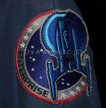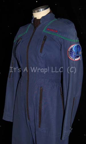 Description: A costume featured in the finale of Star Trek: Enterprise and, truly, the finale of Star Trek episodic television as we know it at this point “These are the Voyages…”; wherein the “Enterprise NX-01” assists “Commander Shran” (Jeffrey Combs) in rescuing his daughter from kidnappers and is pursued and boarded by the aliens. This costume is a 22nd century, Earth Starfleet uniform consisting of a full-length, long-sleeved, blue jumpsuit with seven functional, zipped pockets, Sciences Blue division strip, zip/Velcro cuff adjustment for the wrists and ankles, a sewn on nametag on the left breast that reads “W. Willis”, matching shoulder epaulettes used only in this episode, and a long-sleeved, black undershirt that buttons down the front. A sewn in Enterprise tag in each garment reads ‘Wanda Willis’ but has virtually faded from view and a costumer’s tag reads ‘Wanda Willis, Blue, #093’.