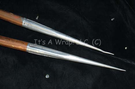 Description: A lot of two prop items featured in the second half of the two-part, TNG episode “Birthright”; wherein “Lieutenant Worf” (Michael Dorn) ends up at a Romulan prison camp and finds several Klingon children who know nothing about their heritage. The lot includes two of metal and copper colored spears, with grooves near the tip and a brass-colored base. Items all have a length of approx. 40 inches and a diameter of approx. 2 at their widest point. The point of one of the items is distinctively bent.