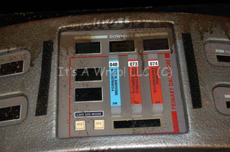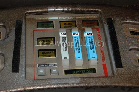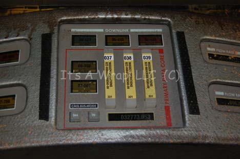 Description: A set piece featured in various episodes of Star Trek: Enterprise and appearing in the Star Trek: Voyager episodes “Workforce Parts I and II”. The item is an acrylic panel with a wood trim edge around it that has a vacuum formed trio of raised interfaces mounted on its front. The item has been altered for use on Enterprise and as such, the acrylic panels inset to the item are made in the style of Enterprise, visible when backlit. The item also features static, adhered data modules. The item measures approx. 34 X 37 X 3 inches and was distressed for use in the episode “Damage” where it appeared as part of the Iryllian starship.