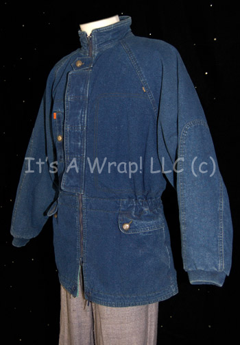 Description: A lot of two items, one of which was featured in the fifth Star Trek feature film “The Final Frontier” and the other a test garment before the final had been settled upon. This lot consists of a long-sleeved, dark-blue, stone-washed denim jacket minus the neon green portions on the arms but retaining the matching lining; placket buttons down the front, and gray trousers with magenta-colored triangular accents near the feet. This lot of “Spock” items is the last of this incarnation of this costume that will be made available. A sewn in Paramount tag in the trousers reads ‘Spock #2, Thermos’, one costumer’s tag reads ‘Spock Sample Only’ and another costumer’s tag reads ‘Paramount, Color Sample, Stone Washed’.