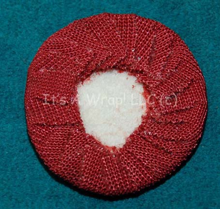 Description: A costume accessory rank placement for a Starfleet uniform like those appearing variously in Star Trek feature films. The item is a circle shaped red fabric piece folded over for neat edges with white batting inside for width made for placement on a Starfleet officer’s uniform. The item is capable of receiving these ranks: all crewman grade ranks, ensign, and all flag officer’s ranks excepting commodore. Item measures approx. 1.5 inches diameter.