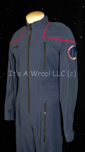 Description: A Starfleet uniform jumpsuit including the famous ‘Enterprise NX-01’ left shoulder patch with Operations Red division trim around the shoulders. “Enterprise” costumes feature multiple zippered pockets, Velcro size adjustments and zippers at the wrists and ankles, and a black, sleeveless, button up undershirt. A sewn in Enterprise tag in both garments indicates wear by ‘Jeffrey Penn’.