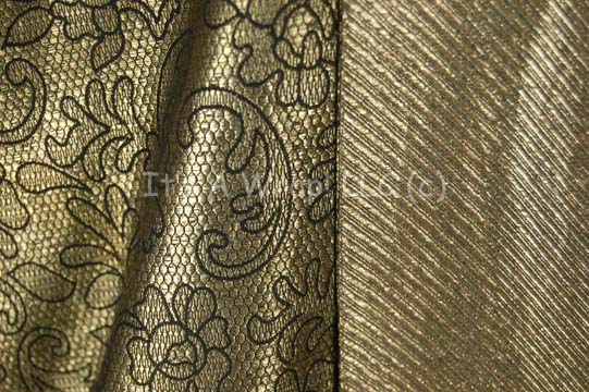 Description: A costume similar to those featured near the end of “The Search for Spock”, the beginning of “The Voyage Home”, and various instances in other episodes and films. This costume consists of a full-length, light-brown gown featuring vertical stripes in dark, iridescent red floral pattern down the front and along the cuffs; large, bell sleeves, and a semi-circular, red “jewel” with gold Vulcan iconographic symbols. A metallic-gold sash featuring a black-outlined, floral pattern, a large stripe down the left side with diagonal stripes itself, and a similar, circular, yellow “jewel” minus the Vulcan iconography. Included is a Vulcan-style, rust-colored, felt hat featuring the same dark-red, iridescent fabric, a blue, and metallic-silver leaf-patterned accent on the back and an additional “jewel” with Vulcan iconography. A sewn in tag on the costume reads ‘3-9’ and a tag in the hat reads ‘4-20’.